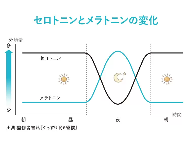 セロトニンは睡眠の質を向上させる「メロトニン」の素にもなるホルモンなので、日中にしっかりとセロトニンを分泌させることが結果的に回復力に繋がり、次の日またフレッシュな状態で過ごすことができます。