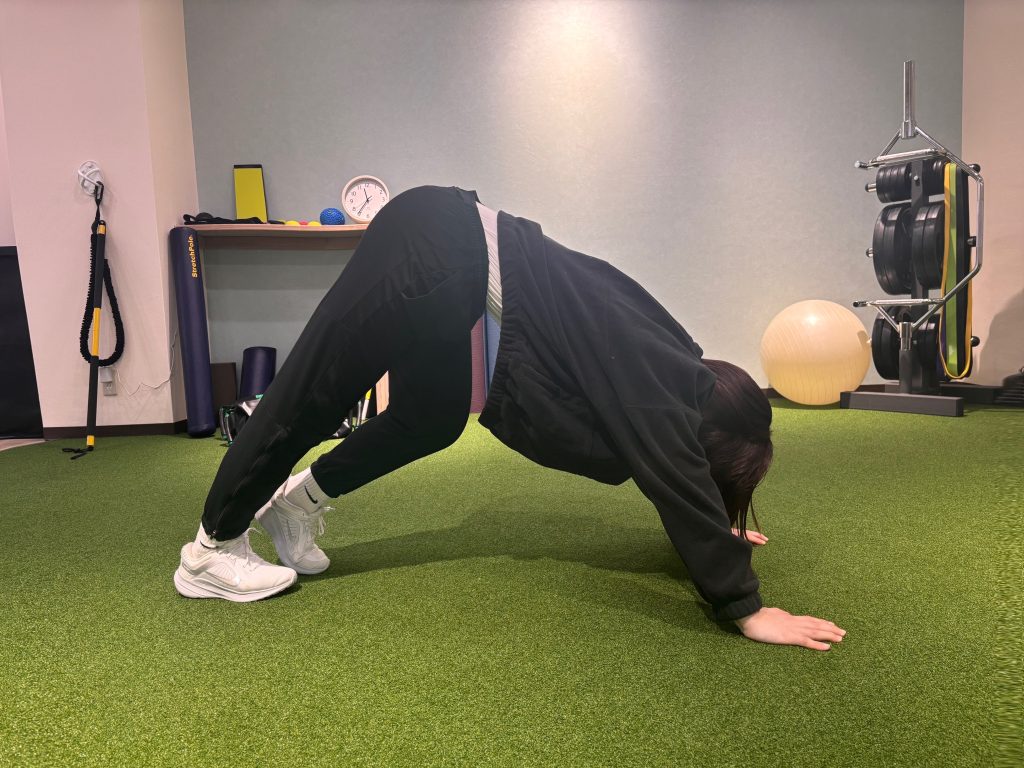- お尻、股関節の伸びを感じれる位置で30秒ほどキープする