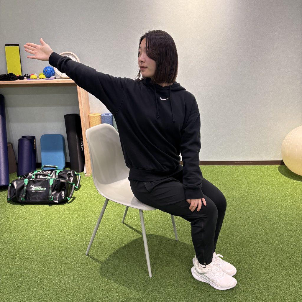 ●肩甲骨が動くのを感じながら、10回ほど繰り返しましょう!