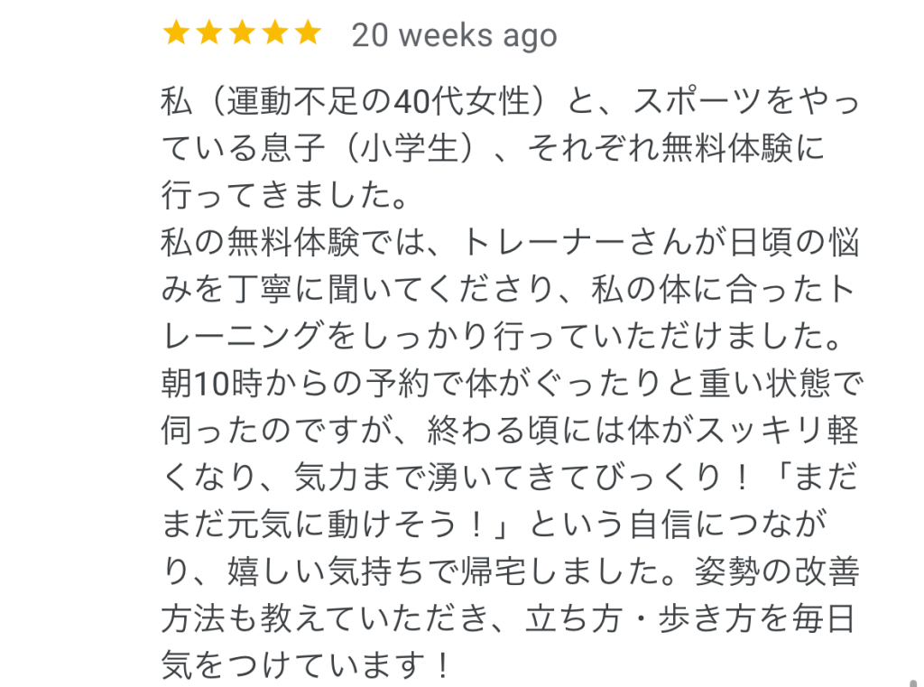 今回はそんな会員様から直接いただいたお声から、口コミを通していただいた言葉まで、トレーニングを通して実際にお客様が感じた心身の変化をお伝えします!